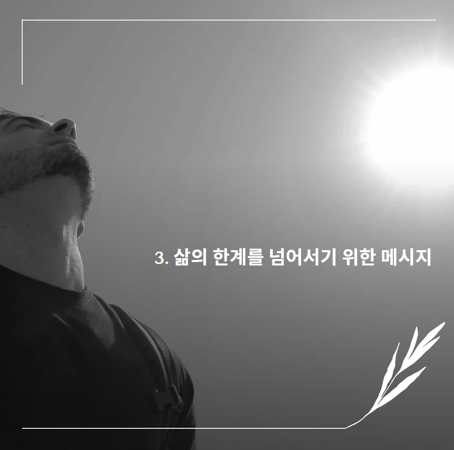 고통 속에서도 희망을 발견하고, 그 희망을 나누는 길은 우리 모두에게 열려 있습니다. 여러분도 지금 겪고 있는 어려움 속에서 의미를 찾고, 그 의미를 통해 더 강한 자신을 만들어 보세요. 희망은 포기하지 않을 때 반드시 찾아옵니다.